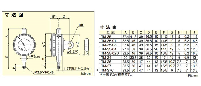 TM-37 | 0.01 | 3.5 | 5 | 8 | ±9 | ±10 | ±12 | ±12 | 6 | ZS-017 | 1.2以下 | 115 |